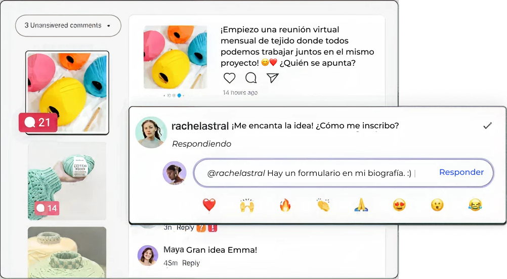 - Gestionamos tus interacciones con clientes en redes sociales respetando el tono de tu marca.